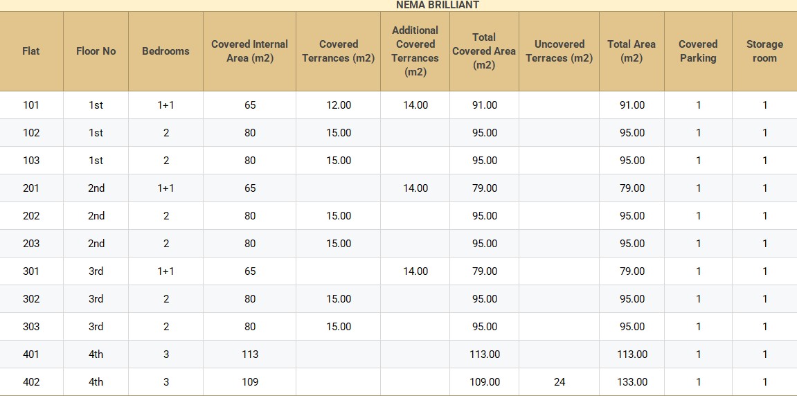- Storage room for each apartment.